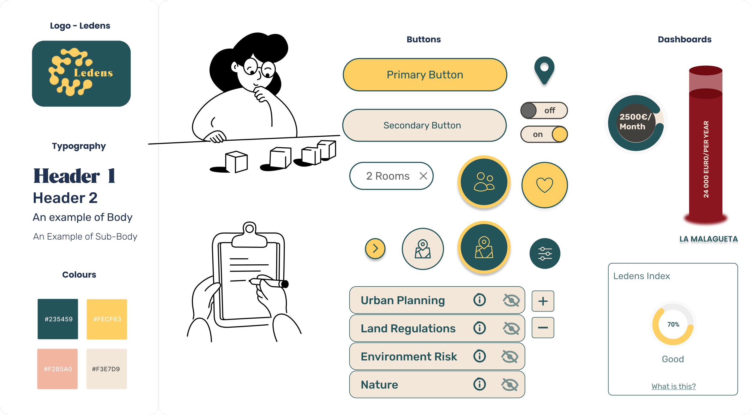 Ledens aims to be an online service for investors and real estate stakeholders in Spain. Currently without online presence, the founder of this young company is CEO Álvaro Navarro, who wants to create a startup business within the real estate market, and needs a team of UX UI Designers to create the MVP.